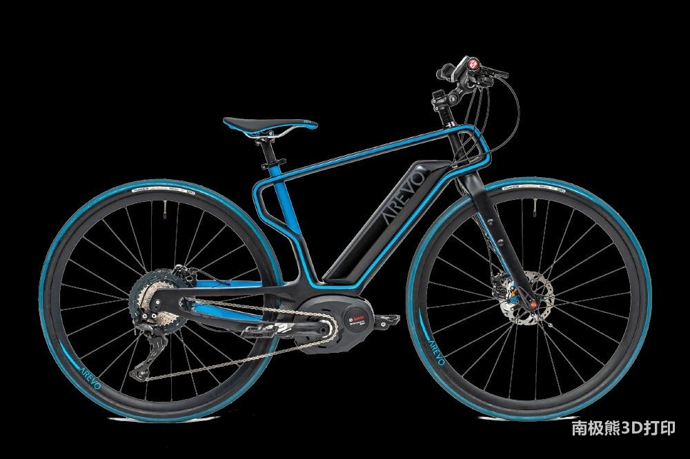 △全球首款3D打印的碳纤维电动自行车Emery One。Arevo与高端自行车制造商Franco Bicycles合作开发一款新的